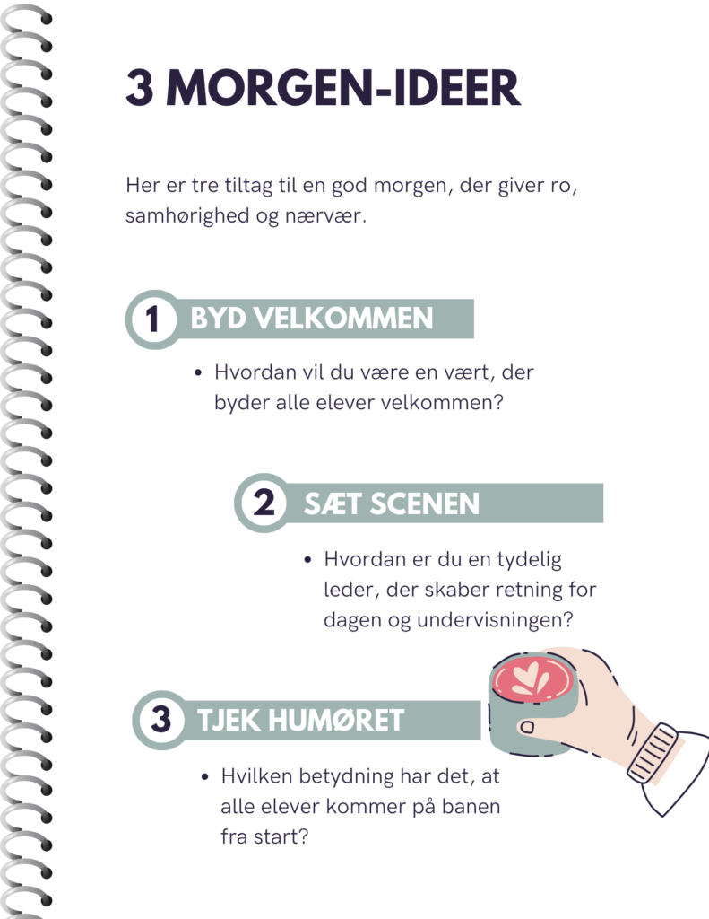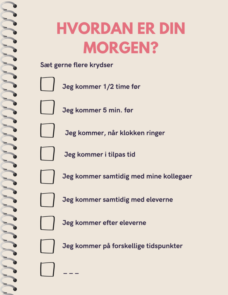 Vi hjælper jer i gang med små justering, og I skal afprøve en morgenrutine i klassen.
